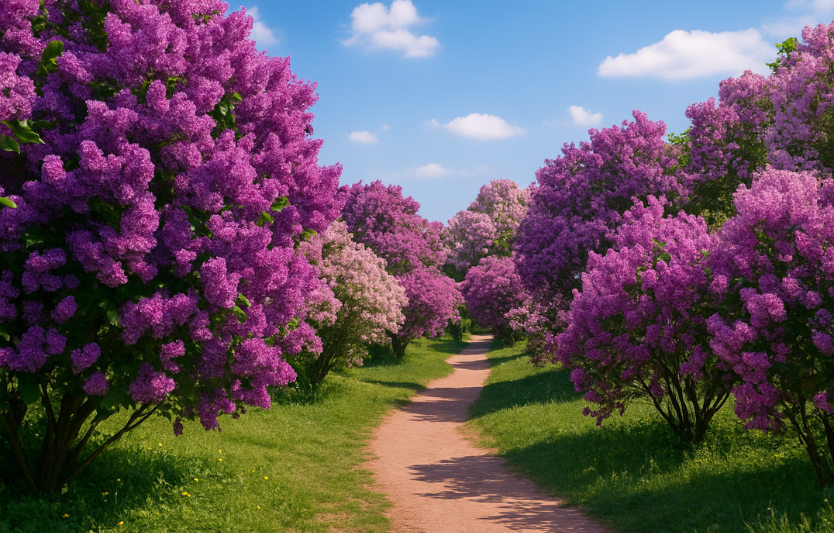 Один із найароматніших і найпопулярніших куточків саду — це Сірінгарій, або Сад бузку. Цей простір особливо улюблений для весняних фотосесій. Але він має й наукове значення — тут вивчають селекцію та адаптацію різних сортів бузку. Розквітає бузок здебільшого в травні, проте останніми роками через ранню весну перші квіти з’являються вже у квітні.